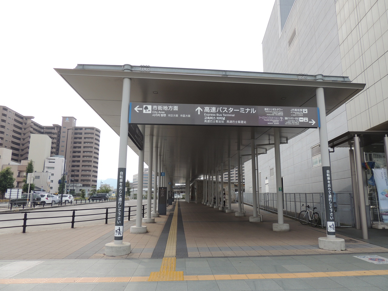 四国で一番大きな都市なのか、なんと高速バスは、16路線もあるそうです。東京、横浜、名古屋、京都、大阪、広島、福岡や四国の各方面とを発着しています。丁度このターミナルのすぐ向かいに人気手打ちうどん店の味庄があります。朝5時からやっているので、朝ごはんにもオススメです。