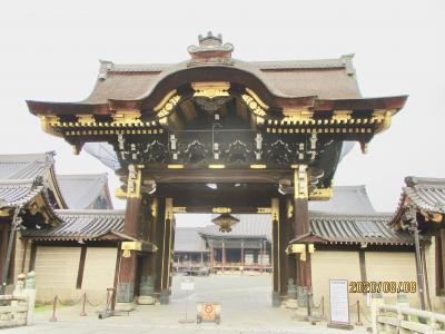 堀川通りに面した立派な4脚門で、切妻造、前後の軒に唐破風がついていて、欅皮(ひわだ)葺でした。隣の御影堂門よりも豪華で、飾り金具や金箔押などの細部の補修が行われ、創建当初の美しい姿が再現されているそうです。