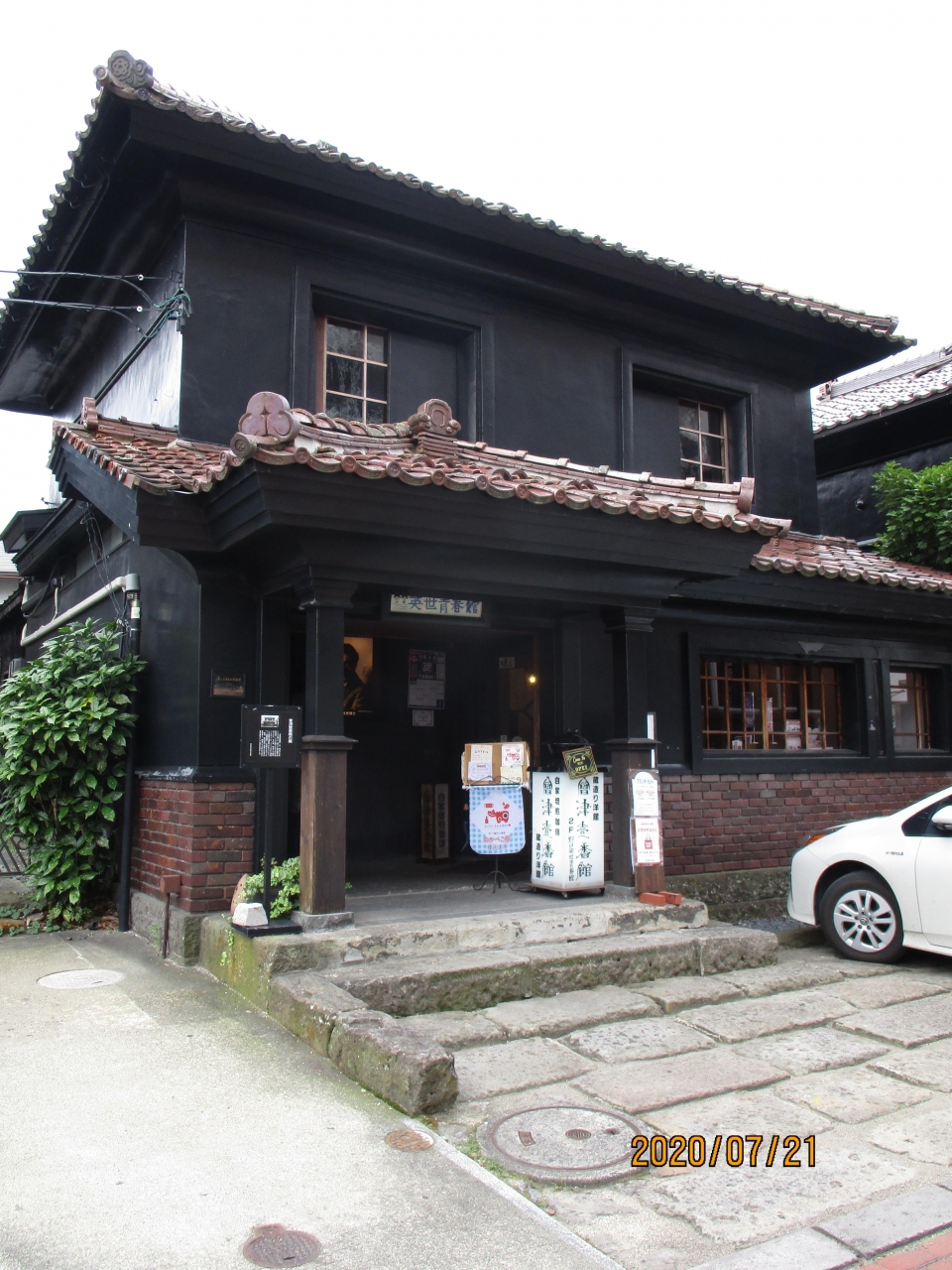 まちなか周遊バスを利用して、鶴ヶ城入口で降りて、鶴ヶ城に向かう途中歩いていて見つけました。1階が和菓子屋さん、中2階がカフェ、2階と中3階がシルクロードの展示室になっているそうですが、この日は閉まっていました。