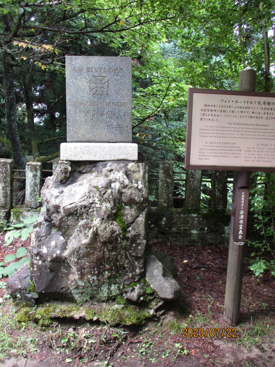 飯盛山の白虎隊士の墓の近くにありました。ドイツ人で外交官だった方が、郷土を命を張って守ろうとする精神に感銘を受けて、個人的に寄贈されたものだそうです。碑面は第2次大戦後米軍に撤去されたのですが復元されたそうです。
