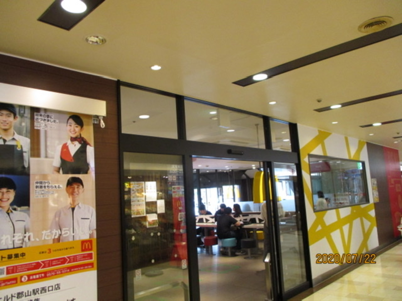 郡山駅の列車の待ち時間を利用して、ヨドバシカメラの1階のATMを利用して駅改札に向かう途中にみつけました。暑くて喉が渇いていたので、アイスコーヒーをテイクアウトして、列車内でいただきました。こういう時にマックがあって良かった。