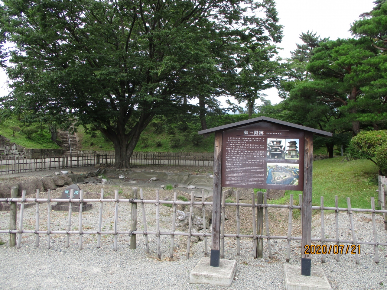 本丸の中を散策していると、鱗閣の近くにありました。この辺りには、後三階という建物があって、会議などに使われた建物だそうです。現在は市内の阿弥陀寺というところに移築され保存されているそうですが、行っていないのでどんなものかはわかりません。