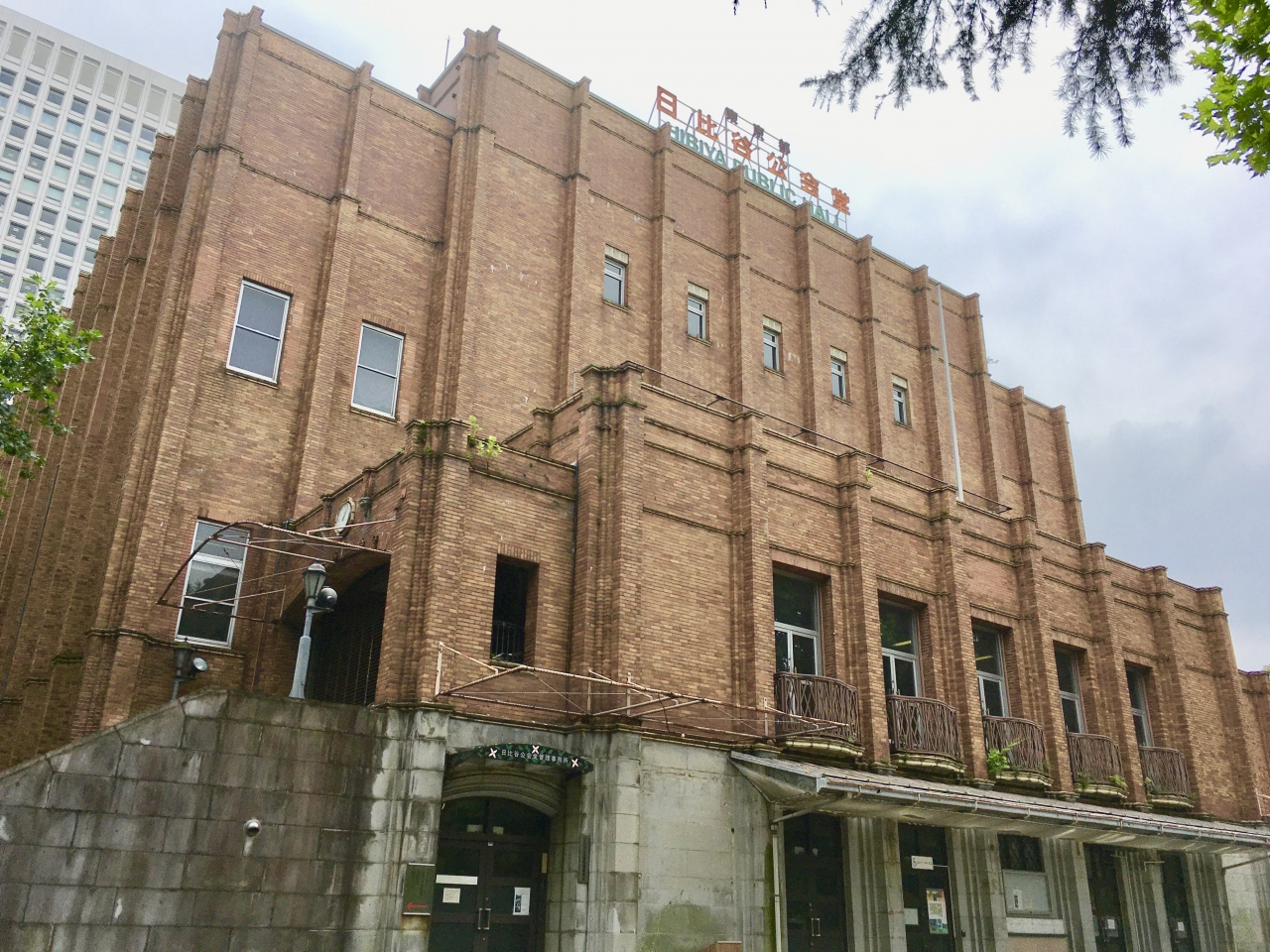 1929年に東京市公会堂として開業していて、鉄筋コンクリート造4階だてです。今でもびっくりするほど大きな建物ですから、当時は驚きだったと思われます。戦前から政治演説会や人民大会なども数多く行われたそうです。2016年から施設の老朽化や耐震化の理由により改修工事が行われていて施設は閉まっています。