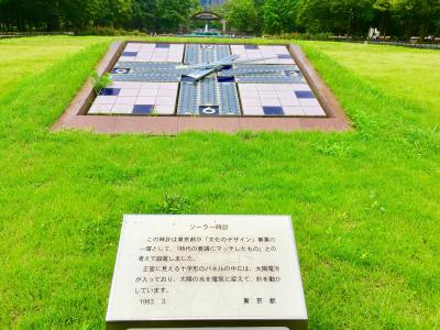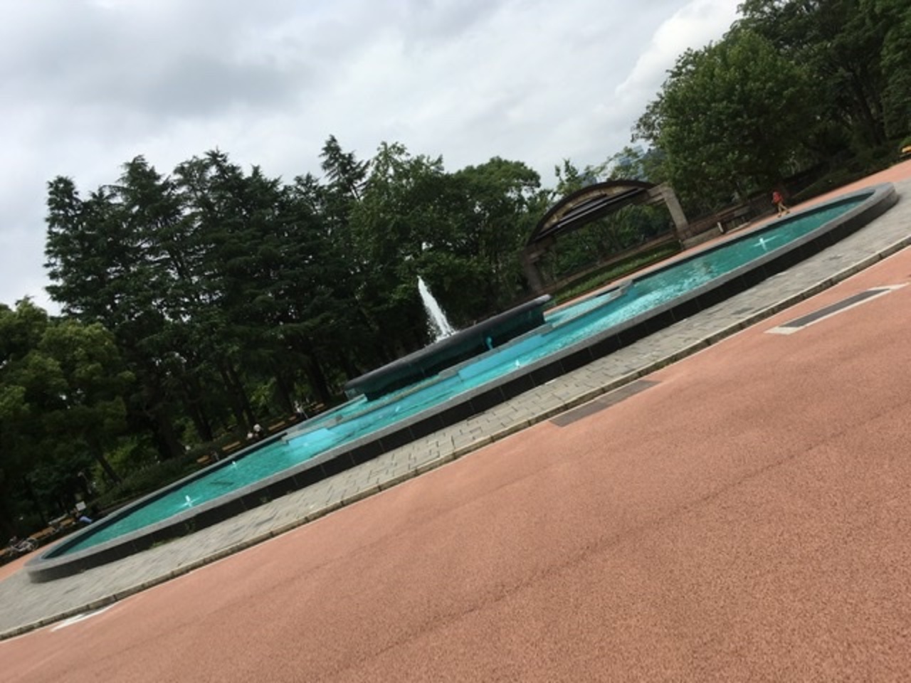 にれのき広場側のソーラー時計があるところから大噴水の前までが第二花壇です。花壇の周りにはベンチが沢山並んでいるので、梅雨の晴れ間のこの日は、暑くて着ているものを1枚脱いだり、日傘を出したり、水分補給をしたりでゆっくりしました。お花はバラが何種類も咲いていました。