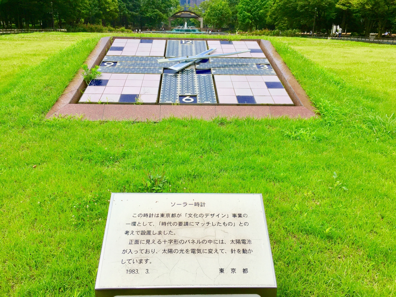 日比谷公園の第二花壇の中にあり、大噴水と反対側のにれのき広場側です。時計の周りにはちょうどバラが沢山咲いていました。周辺にはベンチも沢山あり、幸運にも梅雨の晴れ間に出くわしたので、水分補給をしてゆっくりしました。