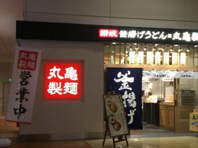 第二ターミナルの地下1階の中で、京急改札からエスカレーターで上がってきたら、右手にコンビニのローソンがあるので、さらに右手を進むと、マクドナルドがあり、その先が丸亀製麺です。時間がない時、急ぎの時に小腹を満たしてくれてありがたい。