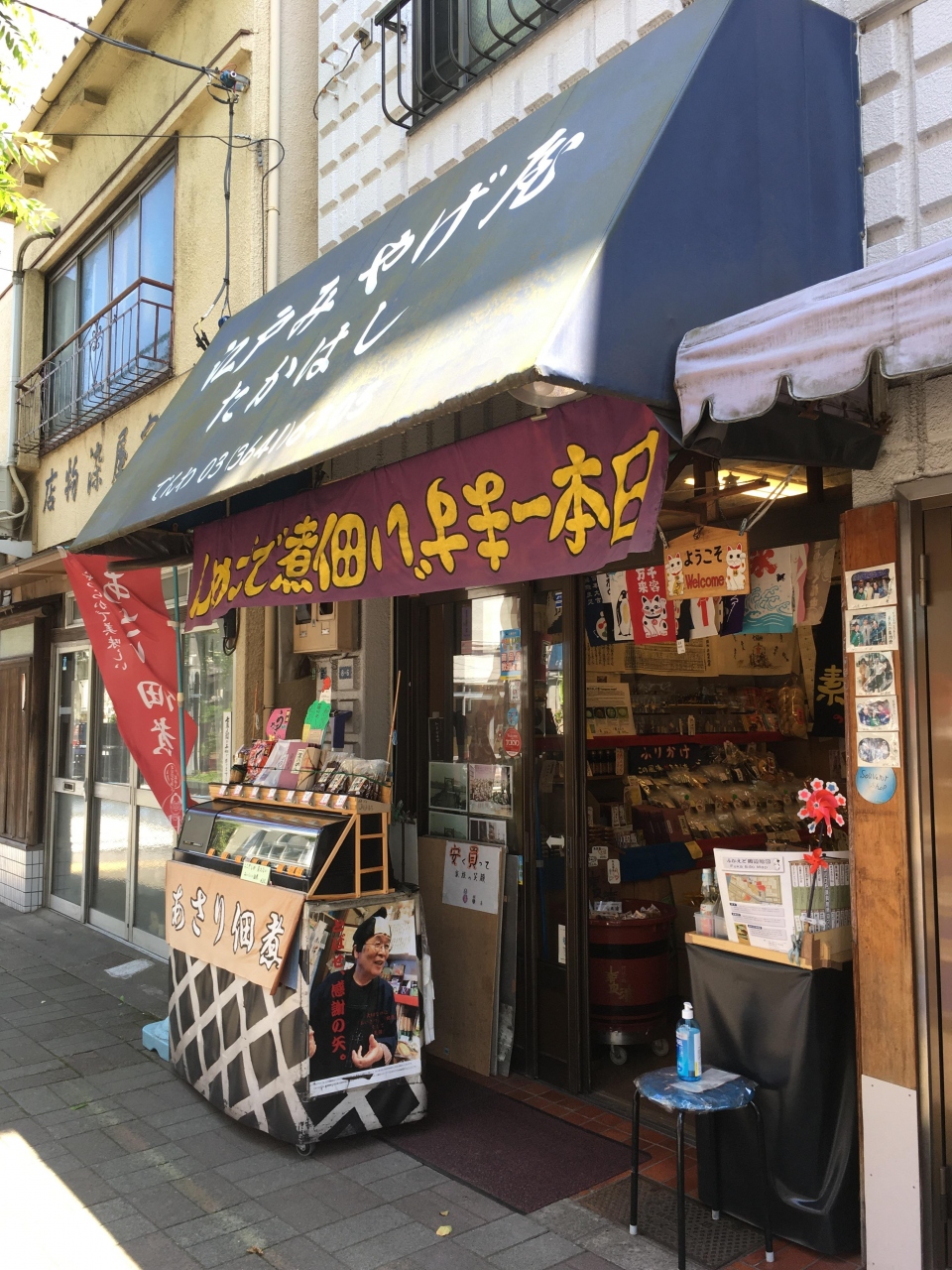 東京メトロ半蔵門線清澄白河駅から歩いてもすぐの深川江戸資料館通りにあります。小さなお店で、アサリなどの佃煮をメインに販売していますが、手ぬぐいなど江戸を感じるお土産物が店内にたくさん陳列されていました。