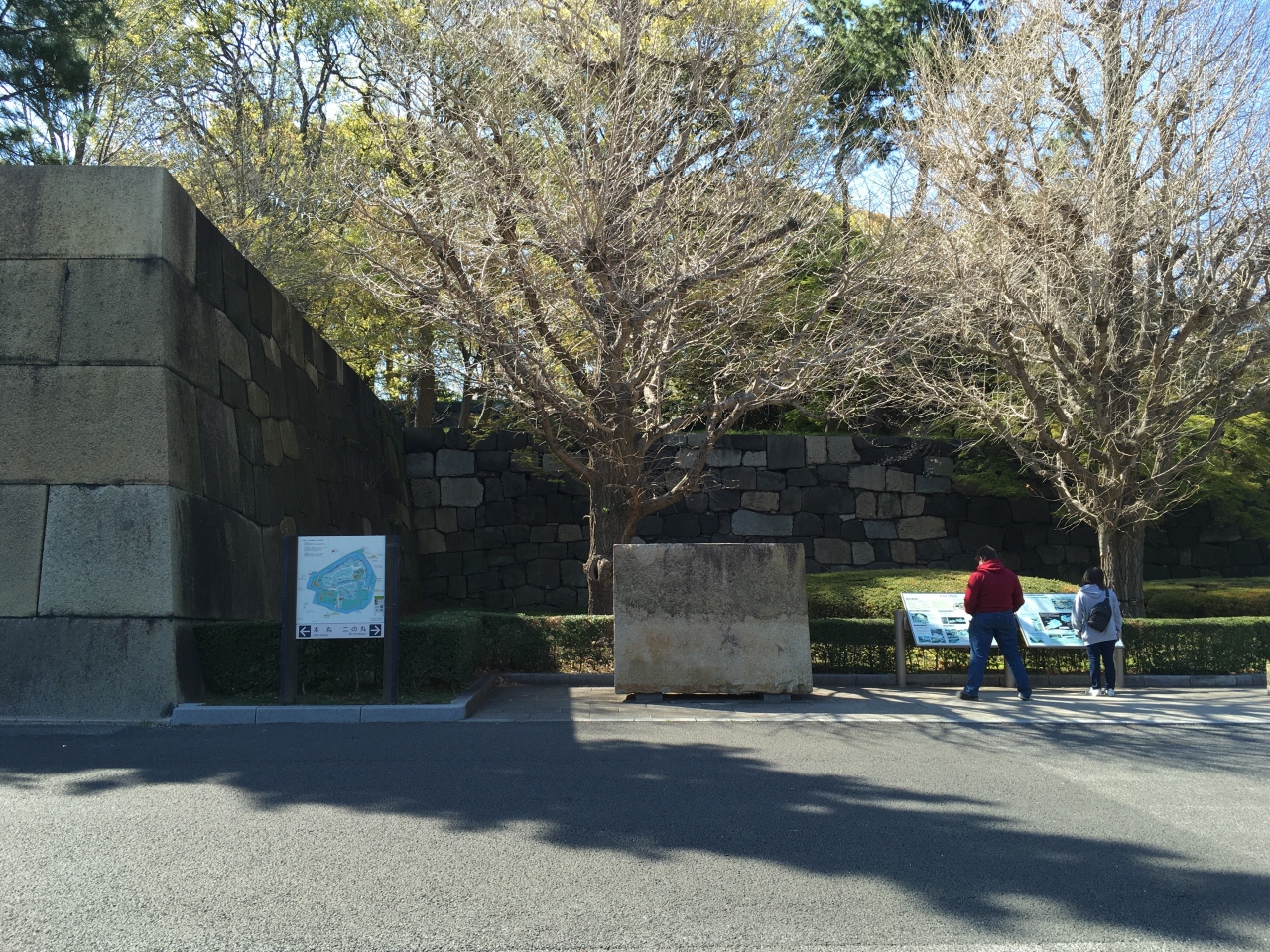 皇居東御苑の百人番所の向かいに石垣があります。ここが江戸城の中之門跡です。門の内側が大番所で、この門も当時の重要な護衛の役割を果たしていたそうです。この石垣は、大名の登城ルートということもあり、江戸城の中でも最大級の巨石を使って美しさを意識し布積みにしたそうです。修復工事の概要などが詳しくパネル表示されていて興味深いです。