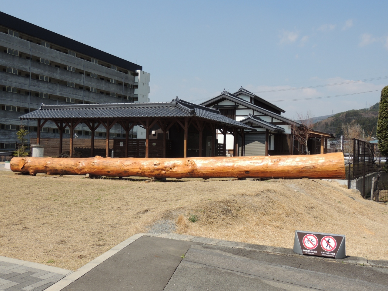 七年に一度開催される御柱祭を紹介している施設です。敷地に御柱が設置してあり、その大きさにびっくりです。管内では、追加料金を払って木落し体験ができるようになっています。柱に乗った人の目線で坂を下る体験です。コロナの影響で閉まっていたのが残念でした。