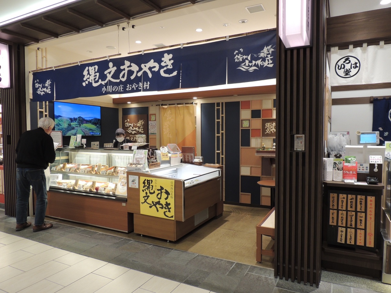松本のMIDORIに比べると垢抜けていて店舗もたくさんありました。おやきのお店の近くにテーブルと椅子が用意されていたので、電車の待ち時間を利用してイートインしても良いと思います。戸隠そばは善光寺の仲見世の方がお得でした。