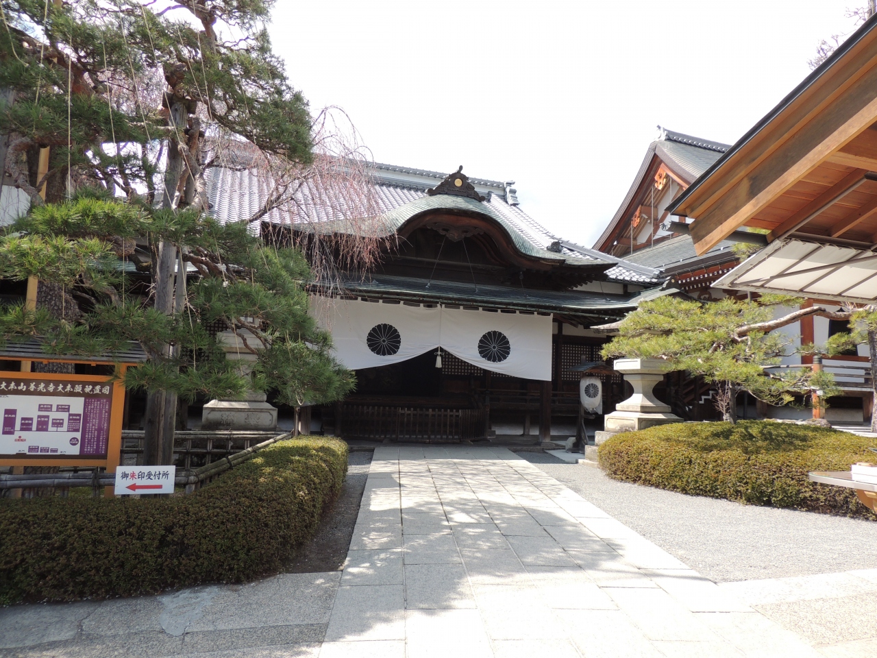 勧進というのは、人々に仏法を説き作善をなすように勧誘策進するという意味で、大勧進は善光寺開山以来、民衆の教化と寺院の維持管理を担っていて、天台宗大本山で善光寺25ヶ院の本坊で住職は善光寺の住職も兼ねているそうです。お血脈はお勧めです。