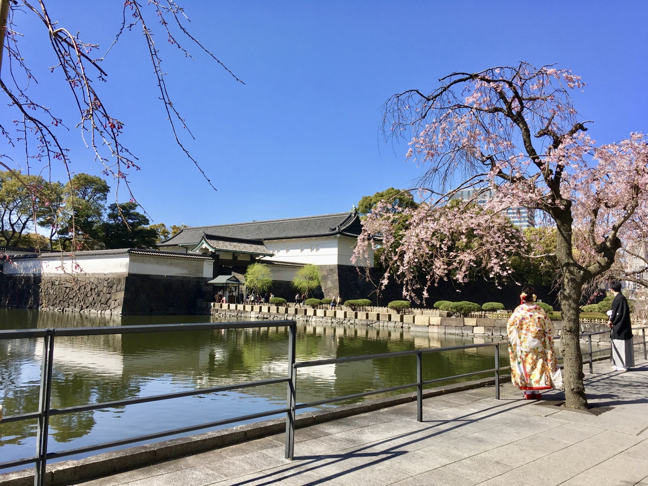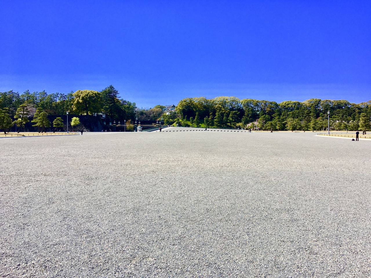 狭い日本、狭い東京の中でここだけは広いと感じる。江戸時代にはこの辺りは老中たちの屋敷があったそうです。現在は日本の東京の観光ポイントナンバーワンで、外国人観光客も多い。この日ははとバスの新人バスガイドさん達が研修に来ていました。