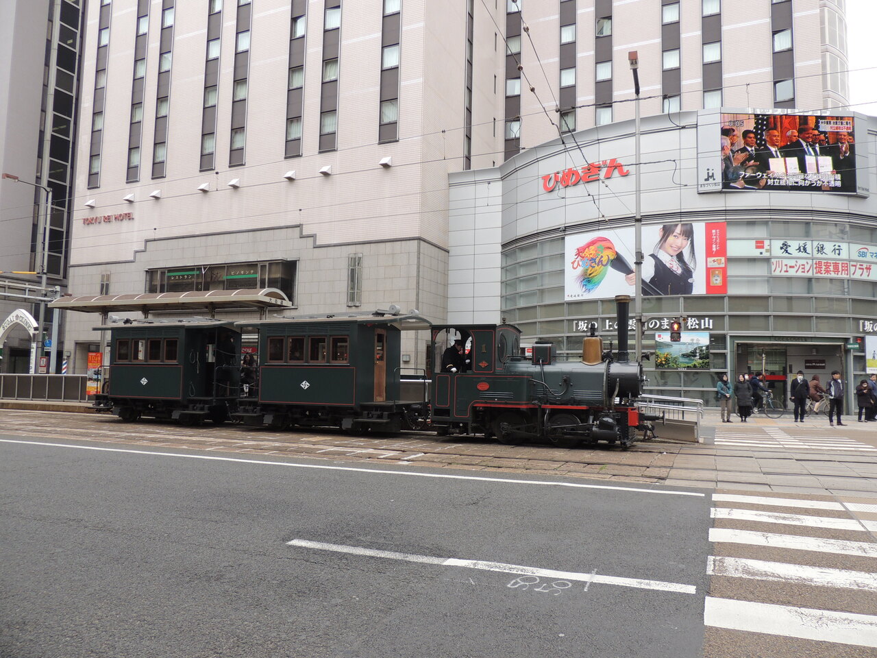 一度は乗ってみたい坊ちゃん列車。伊予鉄の松山城らくトクセット券なら、1700円で、坊ちゃん列車が1回乗車できて、松山城ロープウェイが1往復と天守観覧券と二之丸史跡庭園入園券がつきます。高島屋大観覧車くるりんも1回無料です。