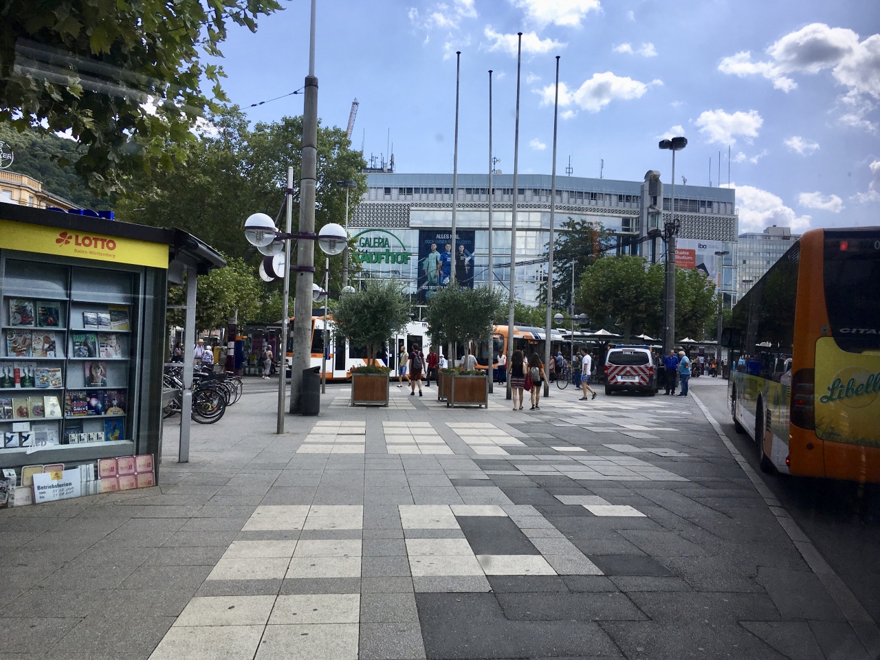テュービンゲンからシュツットガルト、ヘイルブロンで乗り換えて到着し、駅でスーツケースを預けて観光案内所に向かいました。観光案内所は駅を出てすぐでしたが、お城方面へ行くバスの乗り場はちょっと離れていました。