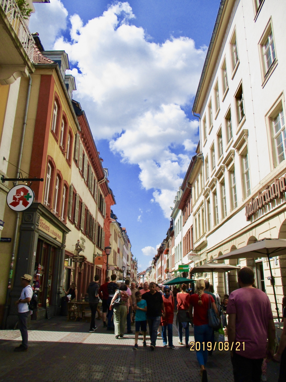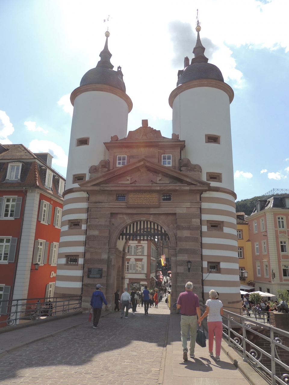 旧市街からこの橋を渡って哲学者の道まで行き、散歩を楽しみたかったのですが、残念ながら時間に余裕がない為、橋を渡ってみて写真撮影するだけにしました。橋の上も観光客が多く、写真を撮るにも待ち時間が必要でした。