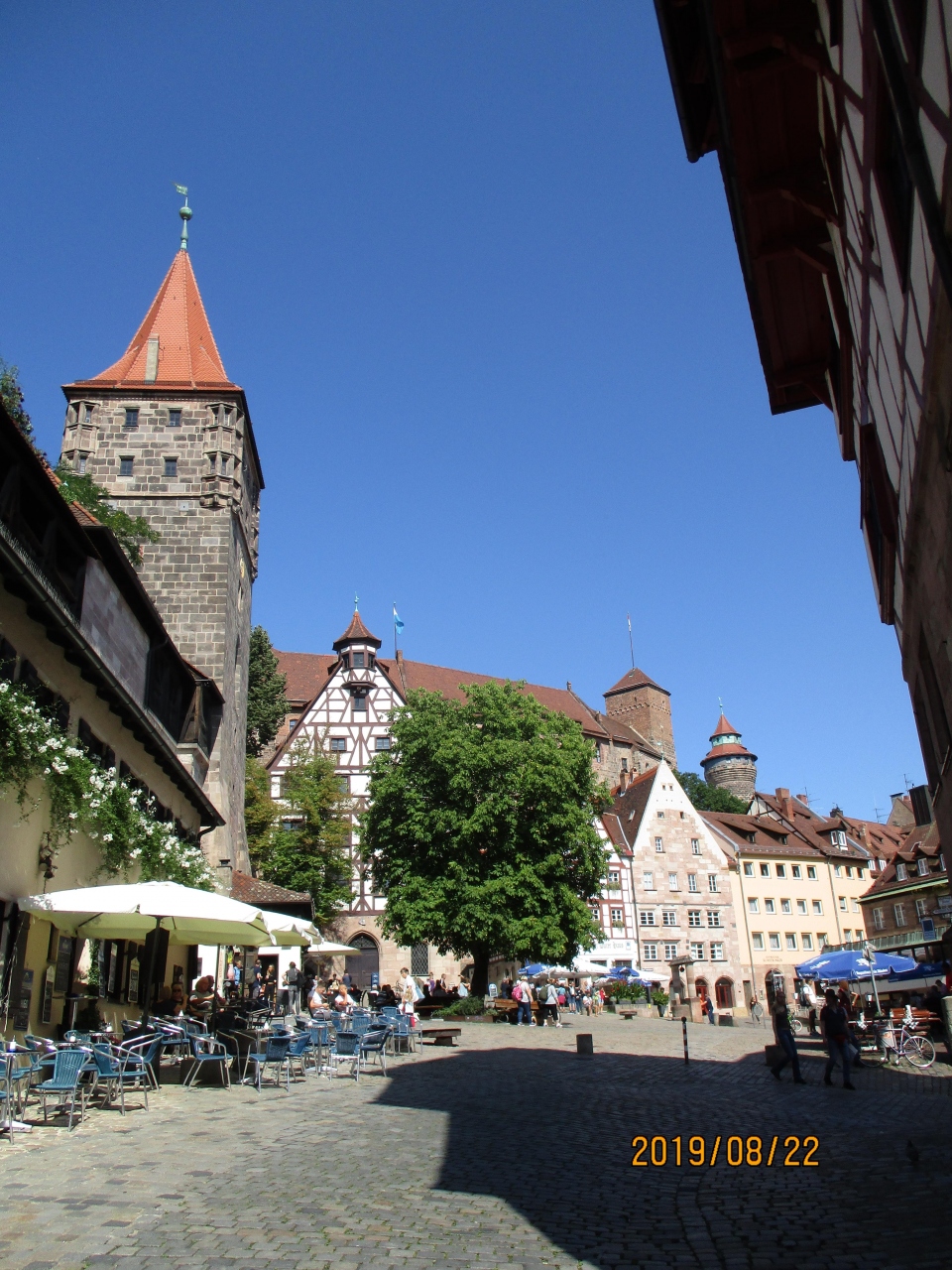 ネッカーツインメルンからシュツットガルトで乗り換えてニュールンベルクへ到着しました。観光をしてこの日はローテンブルクに宿泊する為、スーツケースはロッカーを利用しました。観光は駅前からすぐ徒歩でスタートできます。