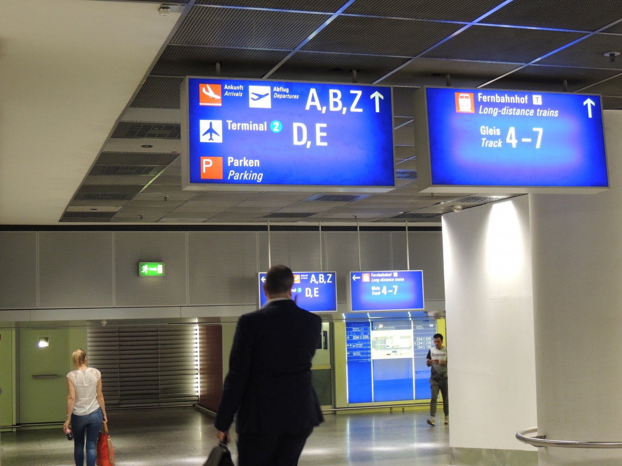 フランクフルト中央駅から国際空港に移動するのに利用しましたが、この駅に到着後、今回はJALだったので、第2ターミナルまで移動しなければならず、時間に余裕を持って移動しないと大変です。一人旅だったので、ひたすら案内表示をチェックしながら進みました。
