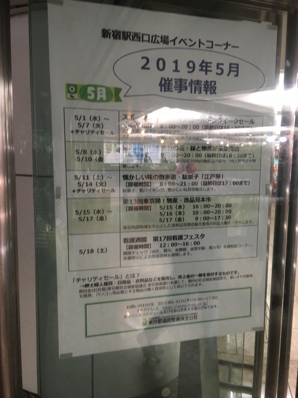 地方の各地の農産物の販売などでだいぶ前に利用しましたが、この日は衣料品やファッション雑貨などの販売をしていました。おそらくイベントがない時だけは空いたスペースを使ってこれらの業者が利用しているのだと思います。JR、小田急、京王、地下鉄どこからも歩いてすぐの便利な場所です。