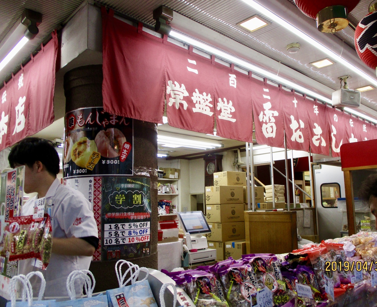 雷門の入り口でいつも賑わっていて、最近のお菓子と比べるとちょっとだけ甘いかな、食感がちょっと昔より柔らかくなったかななんて個人的には感じて、この日も土産に買って帰りました。レジの後ろにハラールの認定証が掲示されていました。