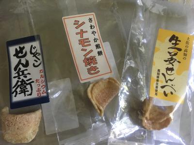 京橋方面から有楽町方面に向かっていたら偶然見つけて立ち寄りました。高知というと坂本龍馬とおいしい食品、特に毎日の料理に欠かせない生姜を思い出し、この日はお手ごろ価格の生姜せんべいやじゃこせんべいなどを買ってきました。