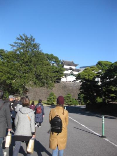皇居一般参観に申し込みをし、ニュースで見かけるバルコニーを実際に見ることができました。ガラス張りで横に結構広いというのが率直な印象。とても広いと感じたこの広場には一度に3万人ずつ入れるそうです。陛下や皇族方が手を振っているお姿を思い浮かべながらゆっくり見学しました。周りの樹木の手入れが行き届いているのも印象に残りました。