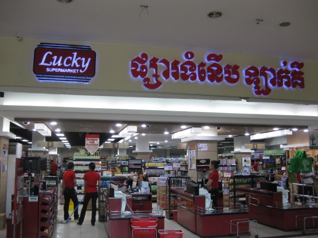 プノンペンにもあるラッキーモールの中にあるスーパーで、食品の種類も豊富で、ばらまき用のペッパーやコーヒーが安く手に入るので時間があったら寄ってみるといいです。日本とは違って商品が乱雑に置かれているのは仕方ないのかな。