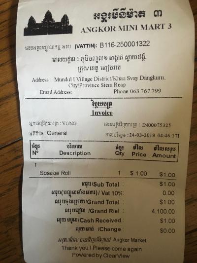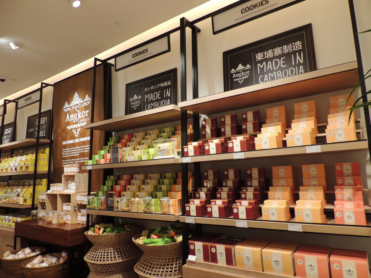 前回も今回もツアーでは案内されなかったが、たまたま見た広告でトゥクトゥク送迎サービスがあるという記事を読んで行ってみた。免税店なので、パスポートとeticketを出してショッピングカードをもらうと以降はこれを見せるだけで何度でも出入りできる。日本人客が少なく、日本語ができる人は少ない。店内には中華料理のレストランとカフェもある。買い物が終わったら受付で声をかけてトゥクトゥクのドライバーに渡すバウチャーをもらう。アンコールクッキーもここで買える。