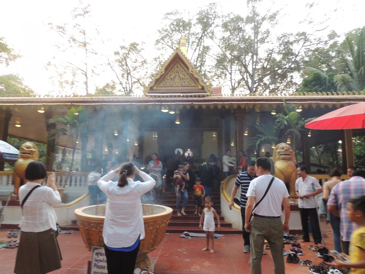 ツアーで訪れたのですが、たまたま仏教の日だったため、ものすごい人でごった返していました。ガイドさんが蓮の花と線香を買ってきてくれて、花を2輪ずつと線香を1本ずつ持ち、入り口で靴を脱いで進みました。お布施なのか?終わるとガイドさんがいくらか払っていました。