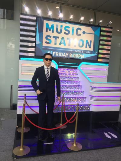 毛利庭園やさくら坂で花見をして集合時間まで時間があったので立ち寄ってみました。庭園の前のエントランスにはテレビ朝日の番組に出てくるキャラクターのグッズを揃えたショップや番組紹介のブースが並んでいて、来場者はそれぞれ自分の好きなところで写真を撮っていました。しんちゃんは中国人ファミリーにも人気でした。私は徹子さんと一緒にパチリ。
