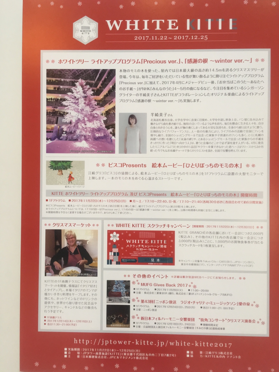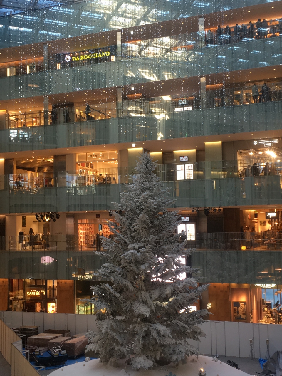 今や東京中央郵便局は1階の片隅にあり、地下1階から6階まで全国の有名店、美味しいもの、素敵なもの、珍しいものが揃っています。クリスマスイベントも開催され、立ち寄ったこの日は大きなツリーが準備されていました。