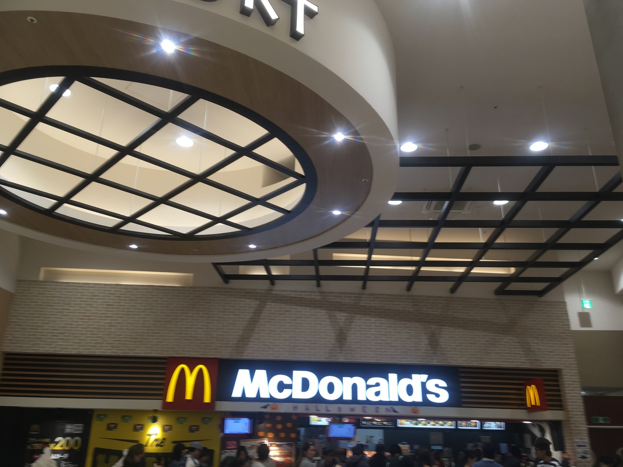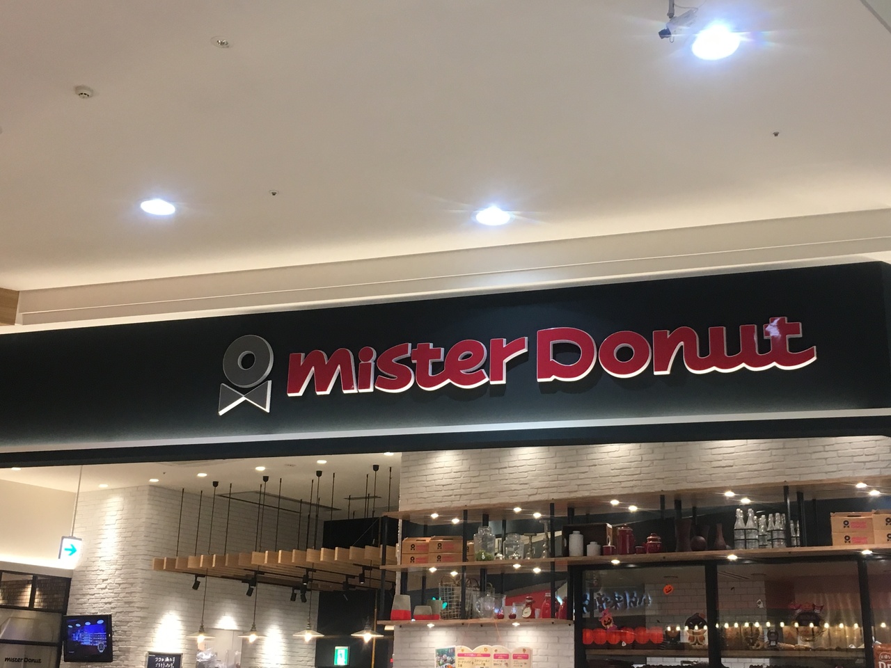 以前はイオンモール日の出店3階のフードコートにあったのですが、1階のレストラン街に移動したので、ドーナツだけでなくパスタやホットドッグなどもゆっくり落ち着いたスペースで食べることができるようになりました。バス乗り場側の入り口近くで、隣がカルディ、向かいがイオンです。
