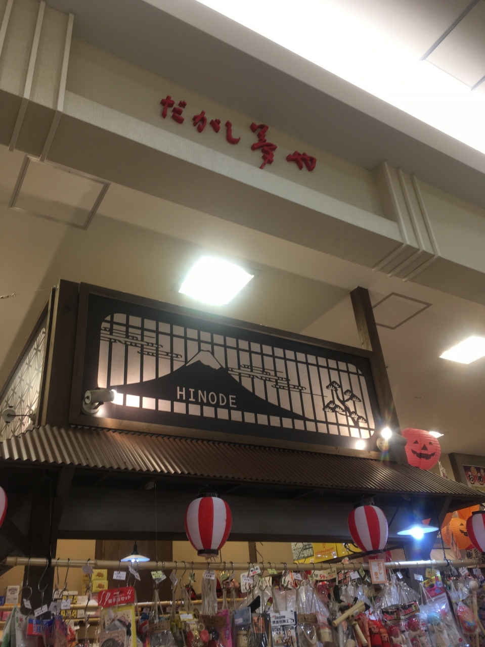 イオンモール日の出店の3階のイオン側にあり、子供達が自分好みの駄菓子を探しています。同伴のお父さんお母さん達も結構馴染んでいるものがいっぱいあるから一緒に楽しめます。駄菓子だけではなく、シャボン玉やコマなどオモチャもあります。見るだけでも楽しい。