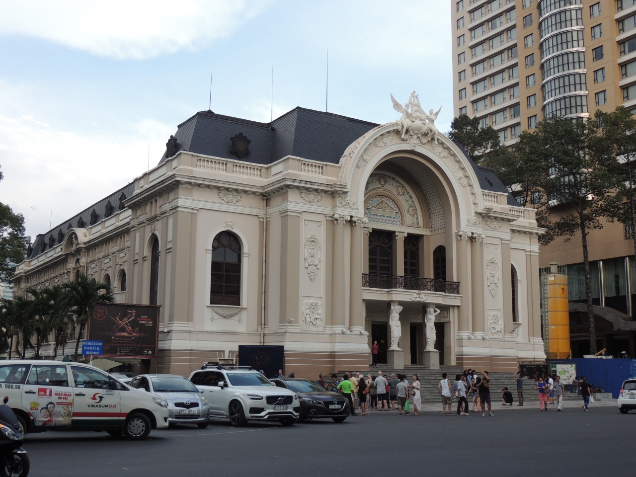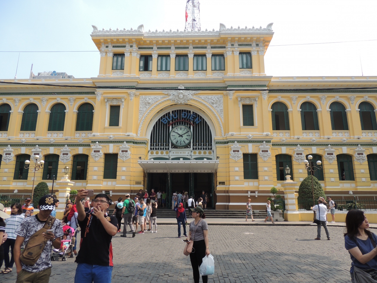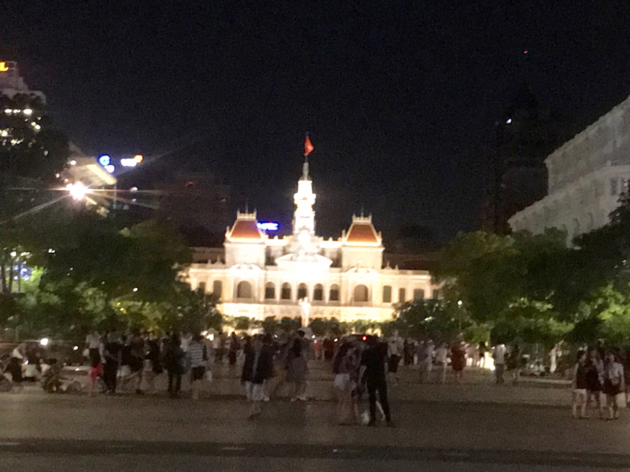 観光客の記念写真の撮影ポイントとなっていて、ツアーでもバスを降りて撮影タイムを取っている。中を観ることはできない。ドンコイ通りの隣の大通りのグエンフエ通りの突き当たりにあり、夜間のライトアップも綺麗です。