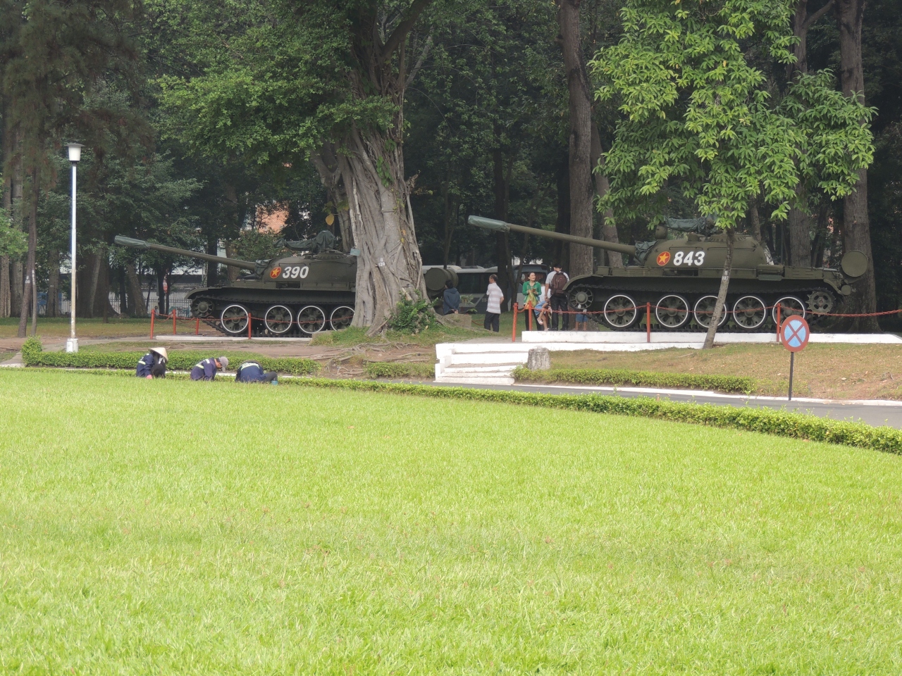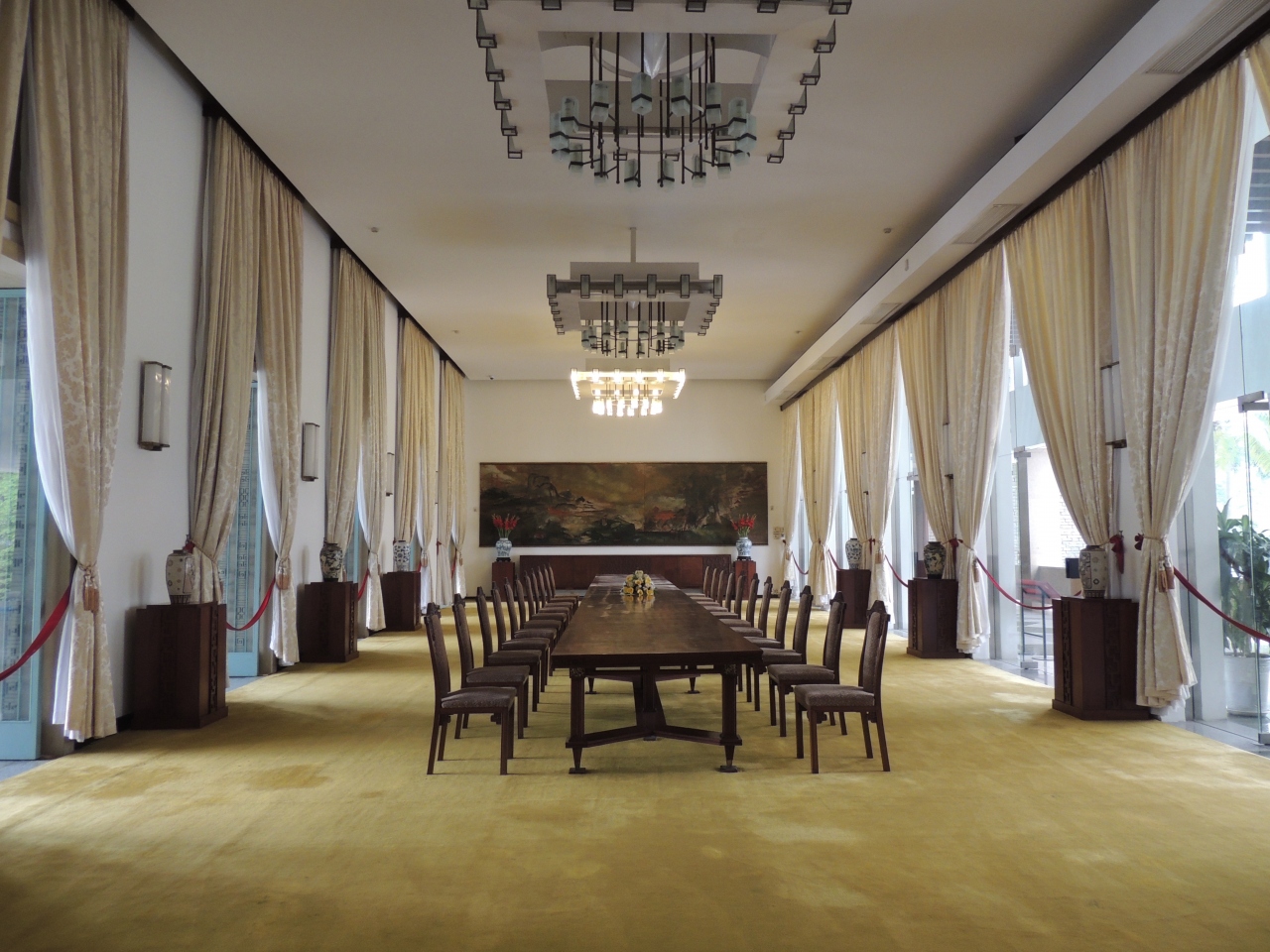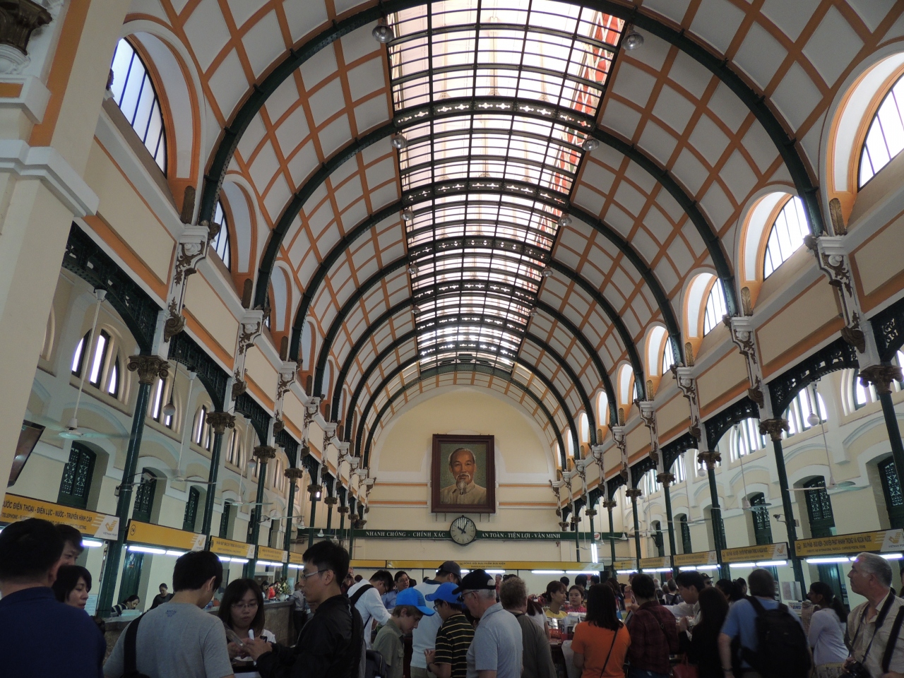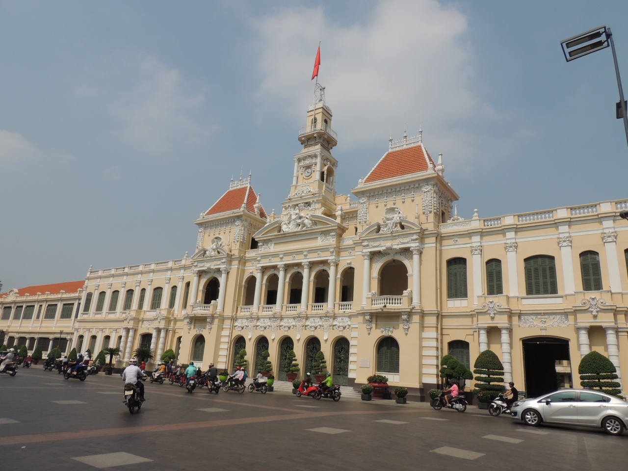 観光客の記念写真の撮影ポイントとなっていて、ツアーでもバスを降りて撮影タイムを取っている。中を観ることはできない。ドンコイ通りの隣の大通りのグエンフエ通りの突き当たりにあり、夜間のライトアップも綺麗です。