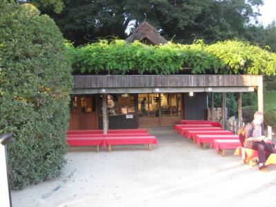暑い日だったが、なぜかお抹茶が無性に飲みたくなって立ち寄りました。嬉しいことにアイスもあり、冷たいお抹茶をいただきました。非毛氈でいただいていると次々に観光客がやってきて、ほとんどの人はかき氷などを注文していました。