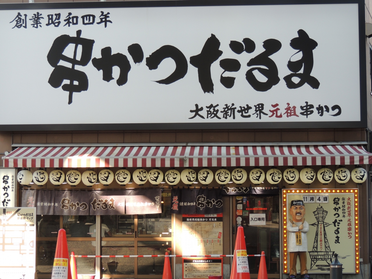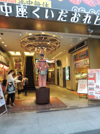 道頓堀で会いましょうと待っているこの人形と一緒に写る観光客の順番待ちで、撮影には所要時間を余分に取る必要があります。人形のすぐ左手に人形焼屋があり、たまたま試食させていただきました。何個でも買えるので歩きながらでもいいし、おみやげにもいい。