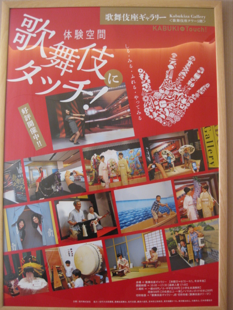 歌舞伎座の裏の高層ビルの5階に、歌舞伎のギャラリーや屋上庭園があるとテレビを見て知り、早速行ってきました。地下鉄東銀座駅から雨でも濡れずに入れます。歌舞伎座の地下2階の木挽町広場でショッピングを楽しみ、エレベーターで5階に上がると、記念写真を撮れる写真館や土産物屋、有料のギャラリー、屋上庭園、奥にはおいしいお茶とお菓子がいただけるカフェがあります。