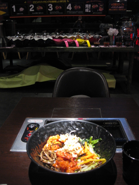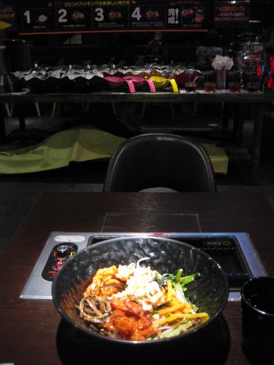 新大久保駅からすぐ。ランチ時にお腹をすかして歩いていたら、お兄さんが呼び込みをしていたので、試してみた。韓流百貨店の2階。韓流百貨店の左の階段を昇ると思ったより狭い部屋に、ナムルなどが並んでいる。チラシでは産地直送のナムル10種類、新鮮野菜、炊き立てご飯、特製ヤンニョムと書かれていた。+350円でサムギョプサルもつく。この日は若い女性が私の他に2組だった。