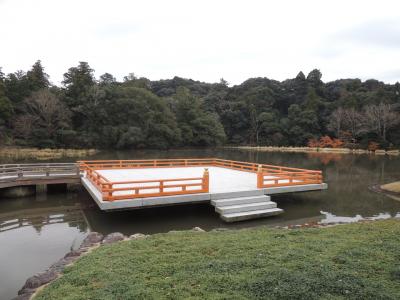 「神宮式年遷宮」というのは、20年に一度ということを、テレビのニュースなどで耳にしますが、こちらでは、その遷宮や神宮、さらに神道についても、深く知ることができるよう展示がされていました。資料館の前には池と舞台もありました。
