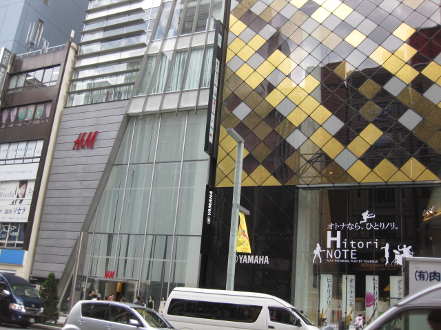 銀座7丁目、ヤマハのすぐ隣。銀座中央通りを挟んで向かいは資生堂。渋谷店と比べると間口が狭い。店内もちょっと暗い。1階から3階はレディース。地下1階はメンズ。平日の昼間だったので、店内はタイからの観光客などが目立った。