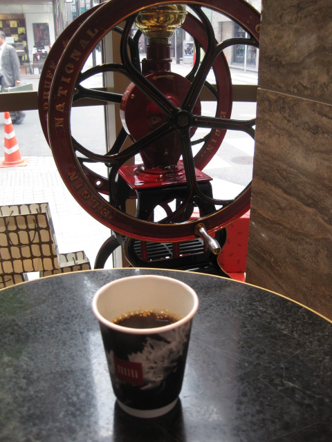 銀座7丁目。資生堂ザ銀座の裏。1階ではブレンド・コナの2種類を1杯100円でテイスティングできる。量り売りのカウンター横にはいろいろなコーヒーの香りを楽しませてくれる。2階では世界中から届く粉を焙煎しているそうです。珈琲好きの方におすすめの場所。