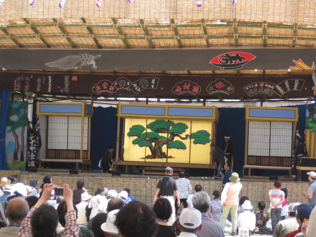 全国地芝居サミットは、毎年地芝居(農村歌舞伎)の伝承されている地域で開催される大きなイベントで、毎回ご当地の地芝居を中心に伝統ある芸能が披露されますが、5月2日と3日は、あきる野市の市制施行20周年を記念して第25回地芝居サミットinあきる野が開催され、秋川キララホールとキララホール前芝生広場で秋川歌舞伎や菅生歌舞伎、お囃子などが披露されました。キララホール前芝生広場には東京都指定有形民俗文化財の菅生の組立舞台が設置され廻り舞台の動く様子などの実演説明などもあり、大変興味深く楽しみました。菅生歌舞伎は9月9日のしょうが祭りでもまた見ることができると思います。