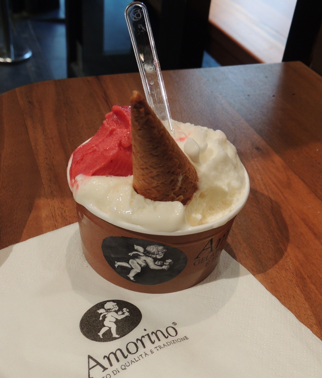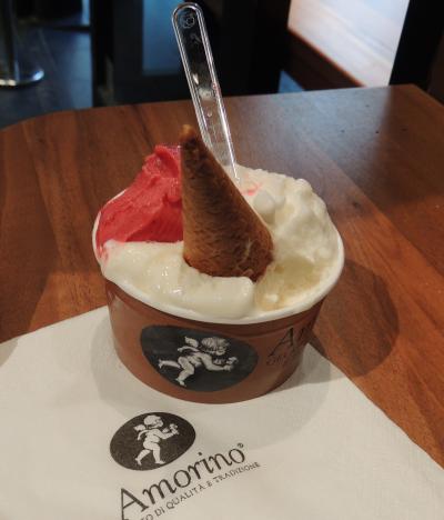 かわいい天使のマークで有名で、パリ市内のサン=ルイ島をはじめ、ギャラリーラファイエットの店内、店頭、サンジェルマンなど市内各地に店舗があり、23軒目はメトロのグランヅ・ブルバーヅから歩いて数分のところ。フォーブル・モンマルトル通り丁度向かいに有名なレストランシャルティエがあり、私たちはこのレストランを目指して歩いていて偶然みつけました。原材料にこだわった本当においしいジェラート。この店舗は小さく、まだあまり知られていないのか私たちが行った時は他にお客様はいませんでした。