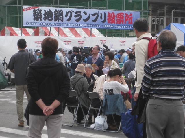 これが最後?かもしれないということを目にして、築地場内の市場まつりに行ってきました。全国の鍋のグランプリをやっていて、大間のまぐろや伊勢海老の鍋はとっくに完売していて、あんこう鍋などを食べたり、しらす干しの試食をいただいたりしました。
