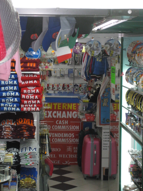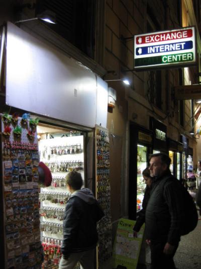 アリタリア航空のWEBチェックインをする為に、ホテルの近くでインターネットを利用。店番のおじさんはパソコンが全くわからず、自分で勝手に操作し、プリントアウトして、