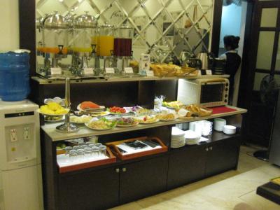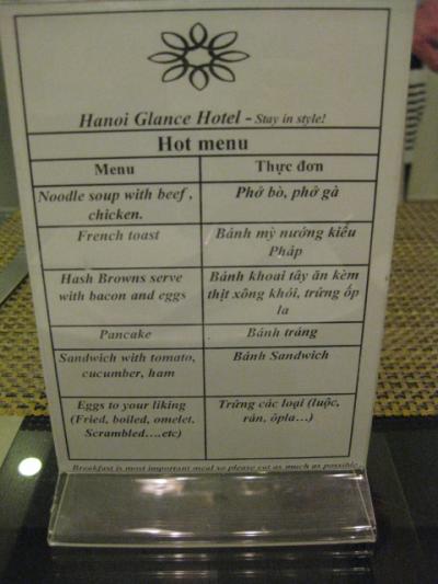 一般のタクシーを使うのと同料金で安心。帰りも依頼した。両替も市内の銀行と同じレートでやってくれて便利。朝食は並んでいるビュッフェだけでなく、卵料理今日はオムレツ、明日はゆで卵と注文でき、フォーも頼める。朝食のレストランも部屋も小さめだが、