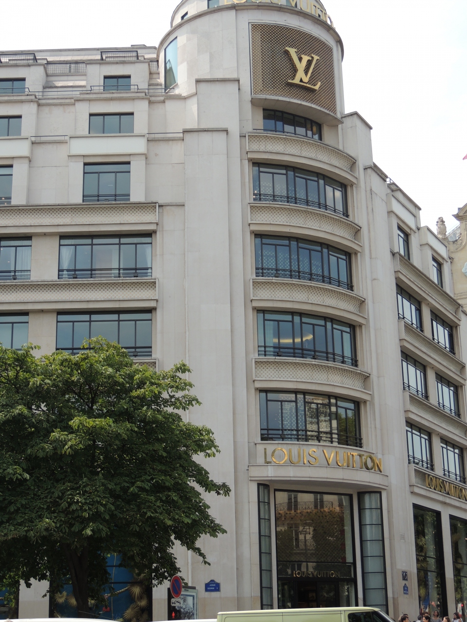 シャンゼリゼ通りをチュイルリー公園から凱旋門に向かって歩いて行き、凱旋門がだんだん近づいてきて、右のモノプリを過ぎ、左のカフェのフーケッツを過ぎると、突然大きなヴィトンのマークが目に入ります。4度目のパリですが、初ヴィトンでテンションUP。