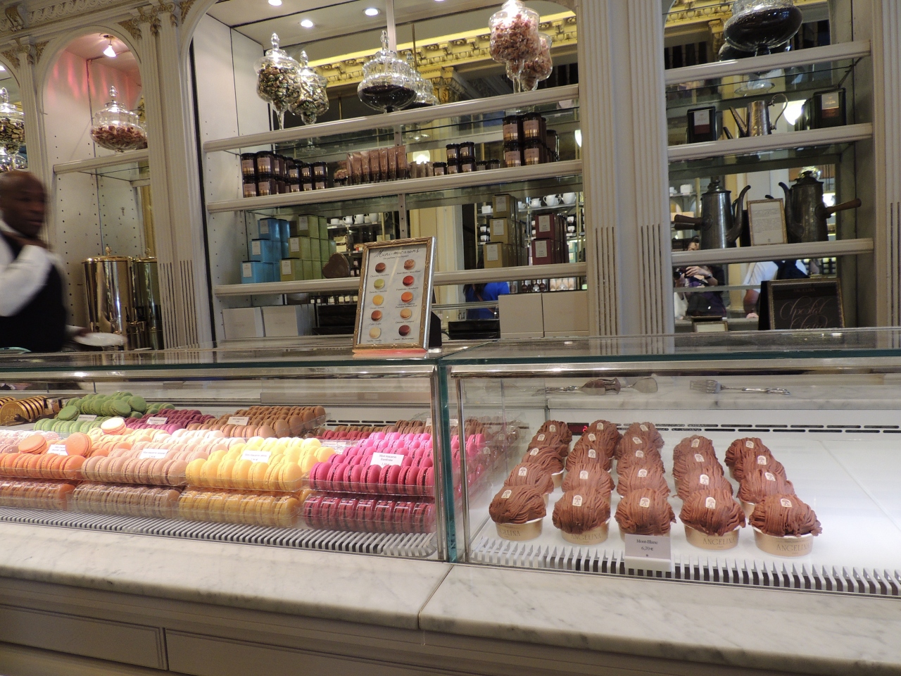 折角来たパリですから、勇気を出してリヴォリ通りを歩いて探しました。間口は狭いのですが、有名なモンブラン初め数々のスウィーツがきれいに並び、奥のサロンの内装の豪華さを見たらとても中に入れず、テイクアウトにしました。