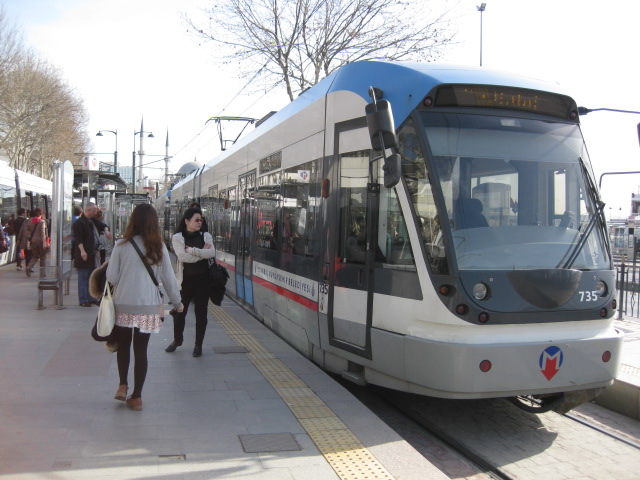 ホテルがシェラトン・マスラクだったので、地下鉄と地下ケーブルカーを乗り継いで、カバタシュからトラムに乗りました。地下ケーブルカーを降りて階段を上り、外に出るとすぐ目の前に乗り場があり、車内はガラス張りで、きれいで静かで乗りごごちもよかったです。