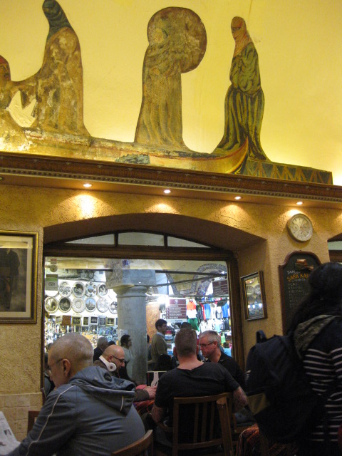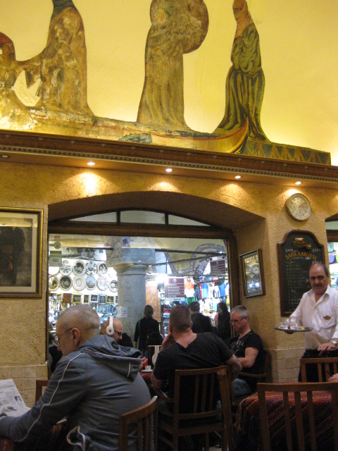 1959年創業の老舗カフェというので、行ってみました。店内は、結構広い。ヨーロッパからの観光客が多かった。昔ながらのトルココーヒーやチャイで一服するのにちょうどよい。店内の壁に絵が飾ってあったり、描かれていたり、好奇心旺盛な私には楽しい所でした。チャイは2トルコリラ。